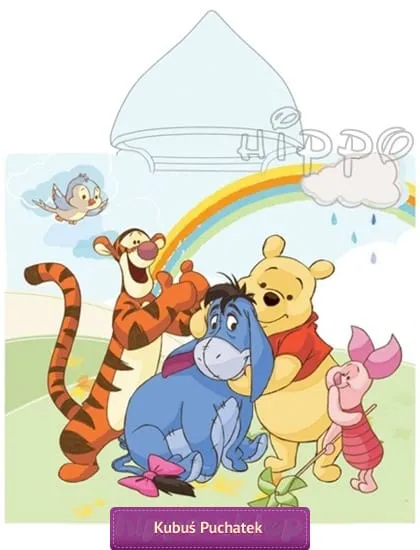 Ponczo ręcznik z kapturem Kubuś Puchatek dla chłopca lub dziewczynki. Bawełniane praktyczne ponczo dziecięce kąpielowe dla każdego fana Kubusia i ferajny jego przyjaciół. Ręcznik ponczo plażowe dla dzieci z Kubusiem, Tygryskiem, Osiołkiem i Prosiaczkiem na łączce. Ręcznik ponczo plażowe dla dzieci niezastąpione w trakcie zabaw nad wodą na plaży, basenie i w parku wodnym, można też stosować w domu po kąpieli. Ręcznik typu ponczo z praktycznym kaptur pozwala sprawnie osuszyć głowę ale przede wszystkim zapobiega zrzuceniu ręcznika przez dziecko co sprawia że jest najpopularniejszym okryciem dla malucha na plaży. dziecięce ponczo kąpielowe z Kubusiem Puchatkiem i gromadką przyjaciół 60x120 cm (w stanie rozłożonym), na licencji Disney Winnie The Pooh, z jednostronnym nadrukiem, wierzch poncza o wykończeniu welurowym, spód o splocie frote w kolorze białym. Producent ręczniki z kapturem Faro, model Ręcznik z kapturem ponczo dziecięce Kubuś Puchatek 01