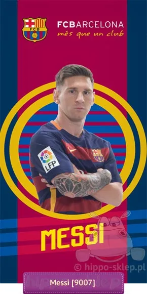 Ręcznik z Leo Messim - plażowy ręcznik kąpielowy dla chłopców - kibiców i fanów piłkarskiego talentu Lionela Messiego grającego w Hiszpańskim klubie z Katalonii - FC Barcelona oraz Narodowej Reprezentacji Argentyny. Ręczniki z Leo Messim napastnikiem grającym z numerem 10, wielokrotnym laureatem złotej piłki, dla chłopca o wymiarach 70x140 cm, wyprodukowany ze 100% bawełny o splocie frote i jednostronnym wykończeniu welurowym z nadrukiem. Ręczniki z Messim niezastąpiony na plaży lub basenie z oficjalnej kolekcji na sezon 2016, z hologramem potwierdzającym oryginalność produktu. Ręcznik z wizerunkiem piłkarza FC Barcelony jest przyjemny w dotyku, kolory są trwałe i nie odbarwia się nawet po wielokrotnym praniu. Praktyczny upominek dla młodych piłkarzy, kibiców i fanów Messiego. Producent Carbotex, kod EAN 5902385212113, model Ręcznik Messi FC Barcelona FCB 9007