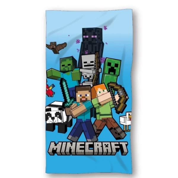 Niebieski ręcznik z postaciami z gry Minecraft MNC24-1023C, 100% bawełna, wykończenie welurowe z jednostronnym nadrukiem, rozmiar 70/140 cm.