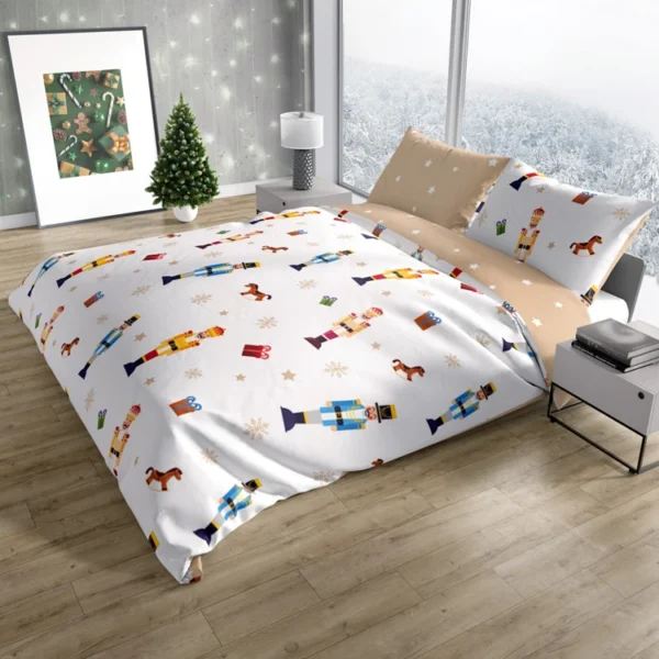 Komplet pościeli z motywem dziadka do orzechów Scandic 041, 100% bawełna, rozmiary 100x160, 120x160, 120x180, 140x160 oraz 140x180 cm a także 140x200, 150x200 i 160x200 cm z jedną lub dwiema poszewkami na poduszkę